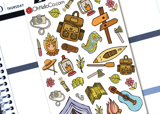 Camping and Travel Doodles - Printable Stickers for the Silhouette
