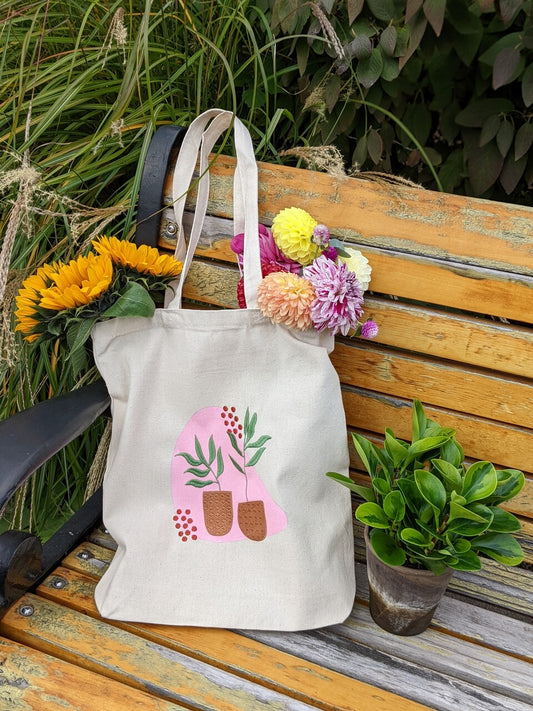 Embroidered Plant Tote Bag