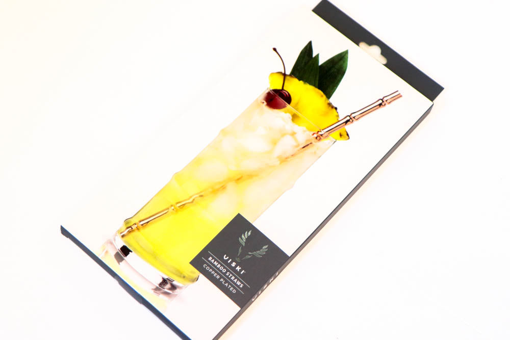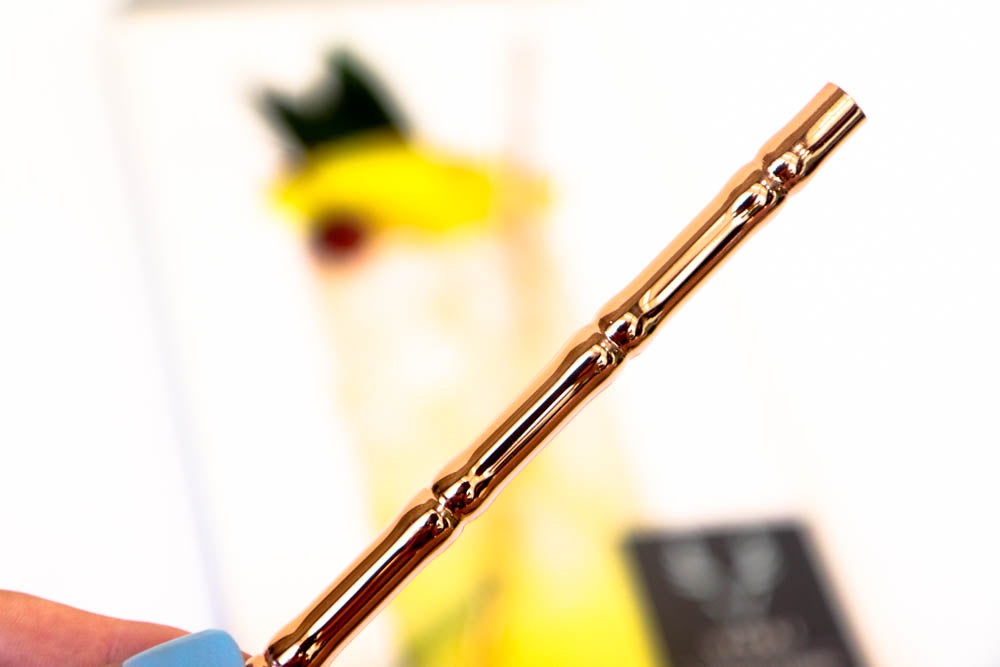 Add a subtle tiki twist to any cocktail. This set of stunning copper straws are made of stainless steel with a copper plated finish and delicate bamboo details. Beautiful and reusable, these stainless steel straws are the perfect drink accessory for the stylish cocktail drinker. Ideal size for tall cocktails. 9.5″ stainless steel straws with copper plated finish. Set of 4. Hand wash recommended.
