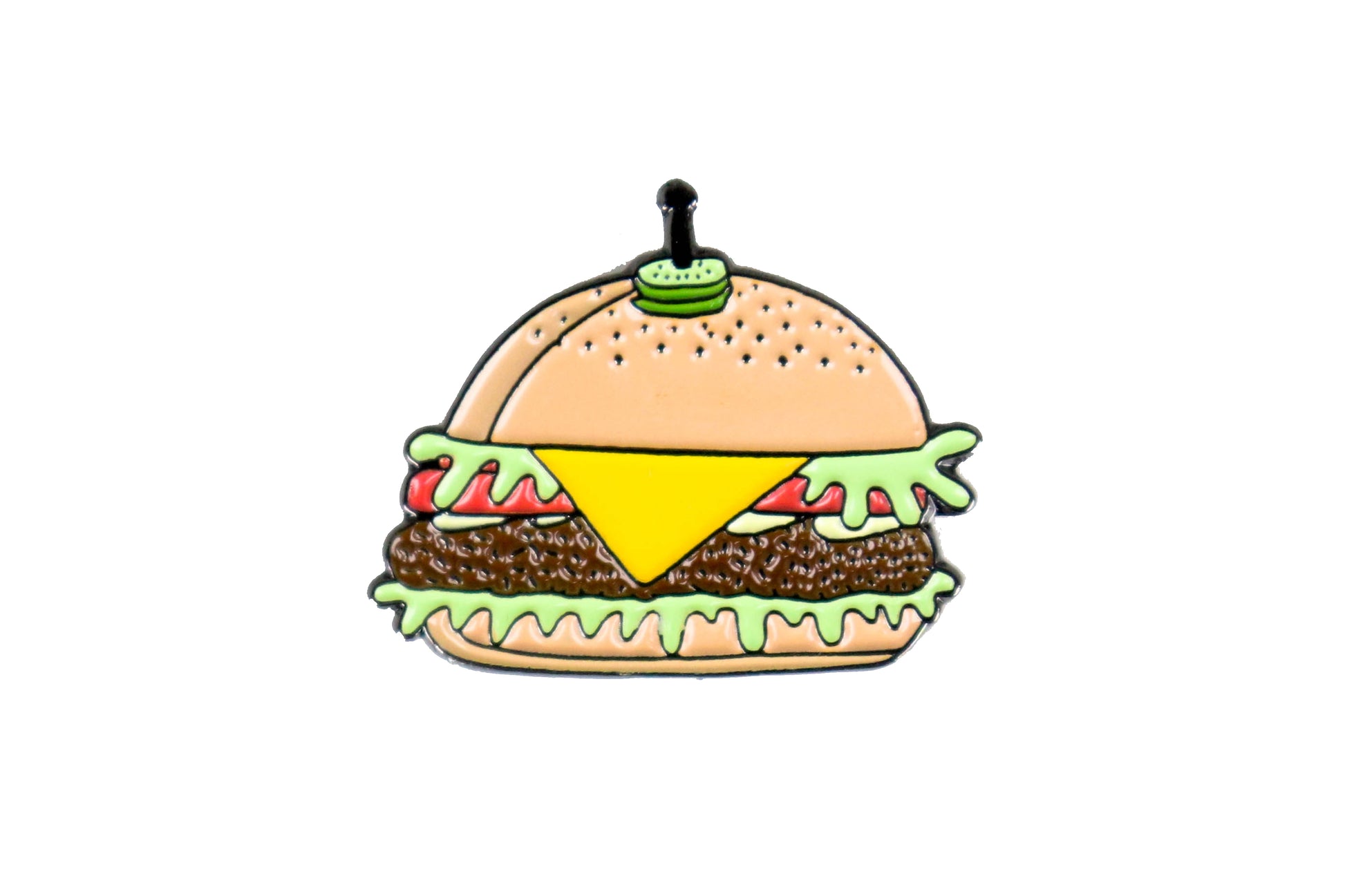 Show off your burger loving ways with this enamel pin! These metal, soft enamel pins are one inch in height and come with a secure butterfly clasp so your pin will stay in place. Wear it on your clothes, put it on your planner, and show off your flair!