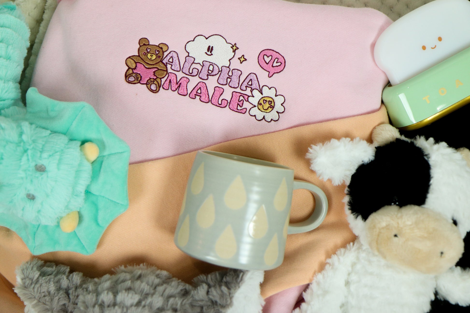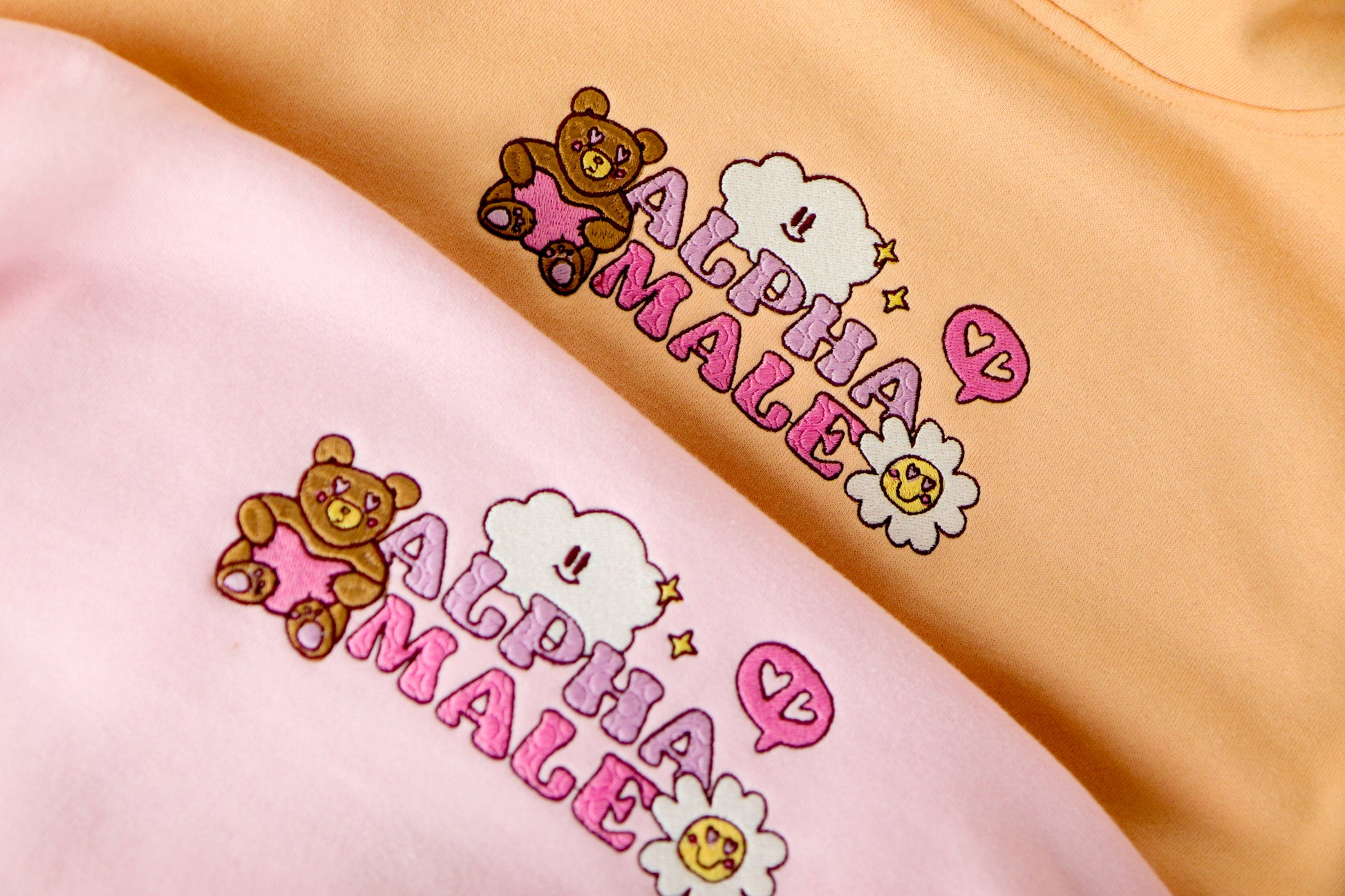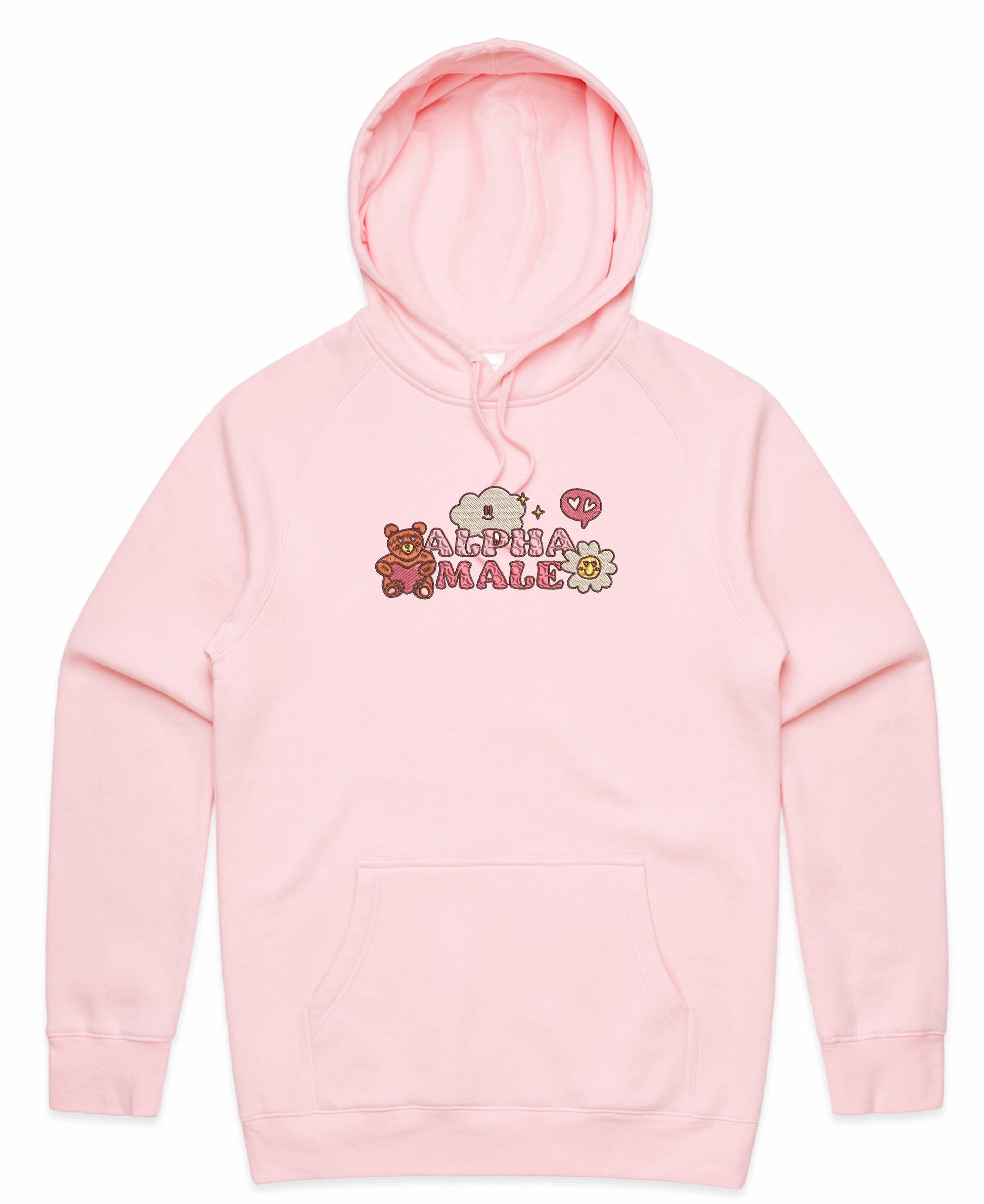 Embroidered Alpha Male Hoodie - Pink/Peach