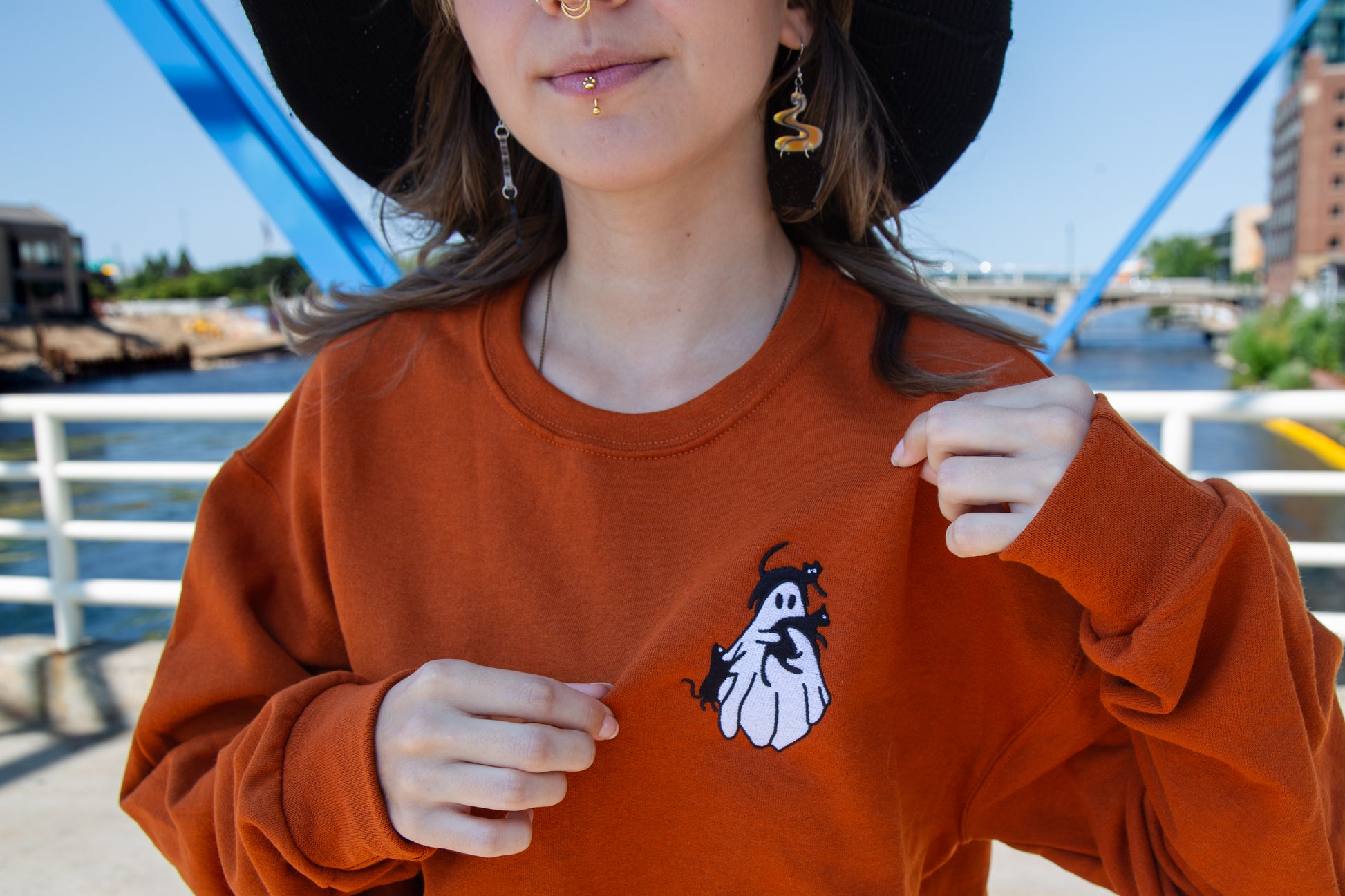Embroidered Ghost with Cats Sweatshirt