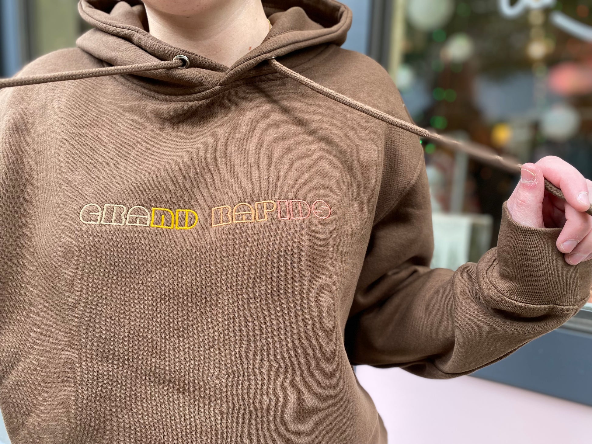 Embroidered Grand Rapids Brown Hoodie Sweatshirt