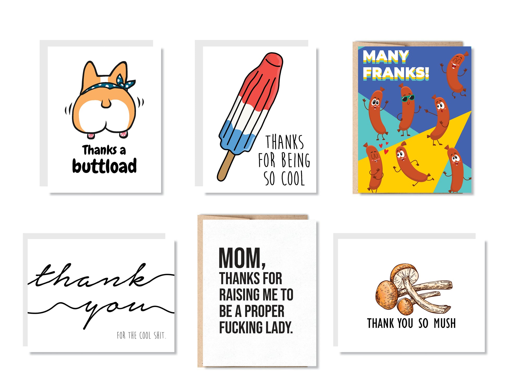Funny Thank You Greeting Card Set or Single - Set #1