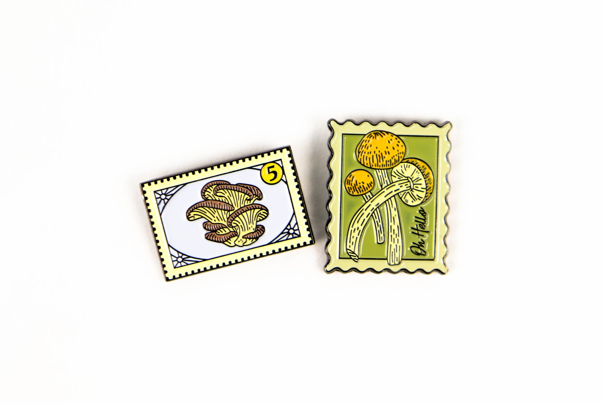 One inch soft enamel pins with locking backs. You'll receive two pins.