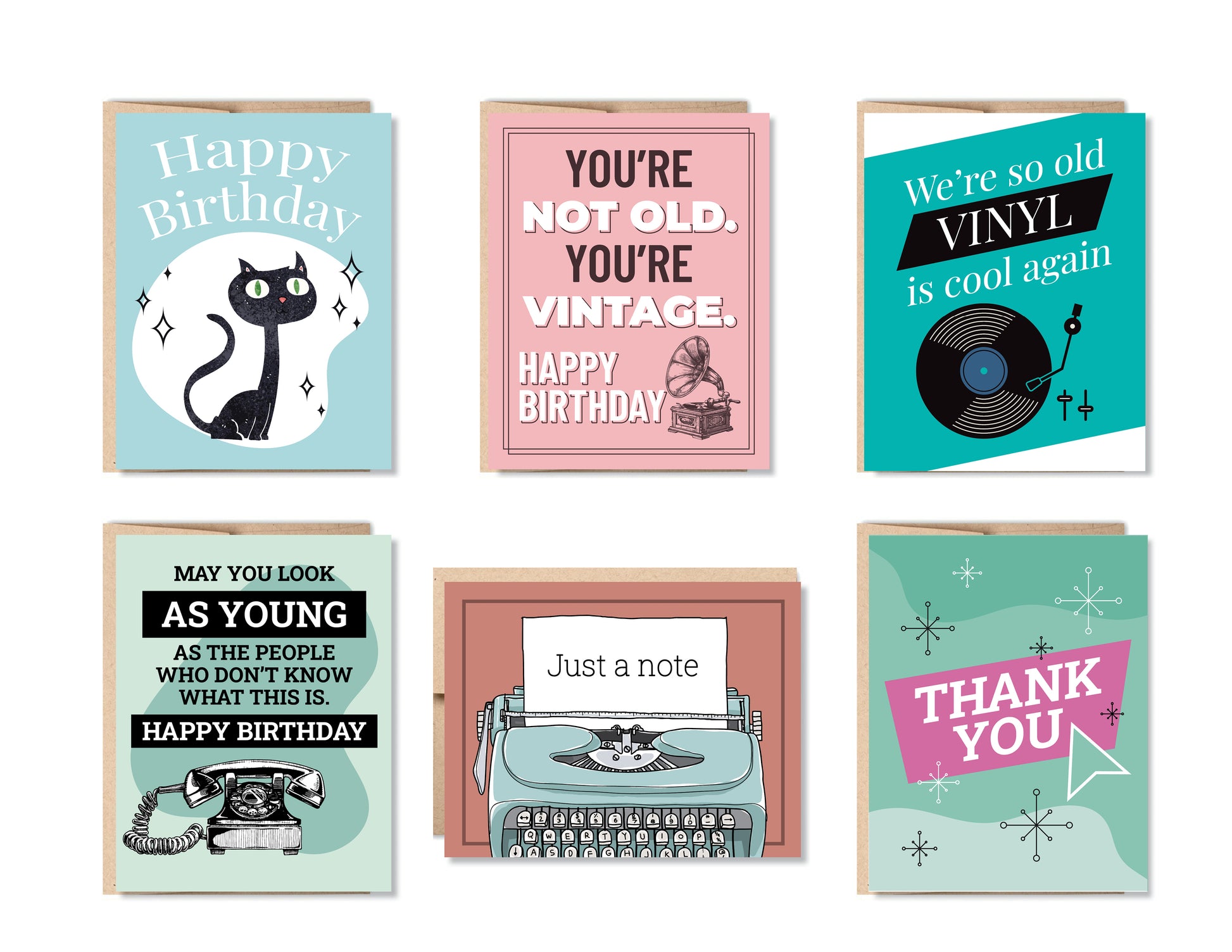 Choose between a single card, a set of six cards with one design each, or a set of twelve cards with two of each design.