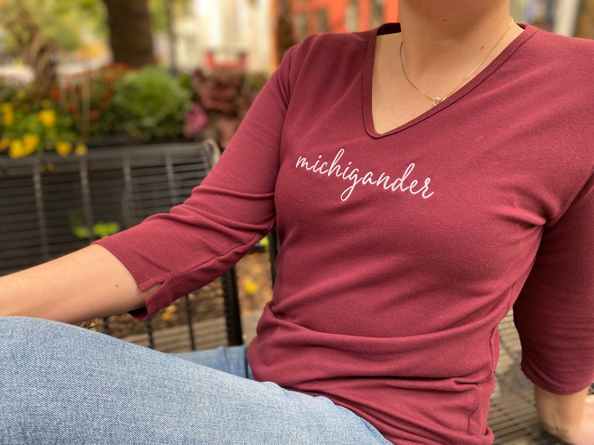Embroidered Woman's Michigander 3/4 Sleeve - Maroon